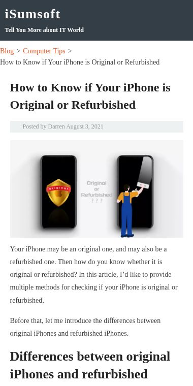 h1: iSumsoft h2: Tell You More about IT World,Differences between original iPhones and refurbished iPhones,how to know if your iPhone is original or refurbished,How to Remove Duplicate Photos from Computer Windows 10,How to Password Protect Image File Windows 10 nav_tags: content: