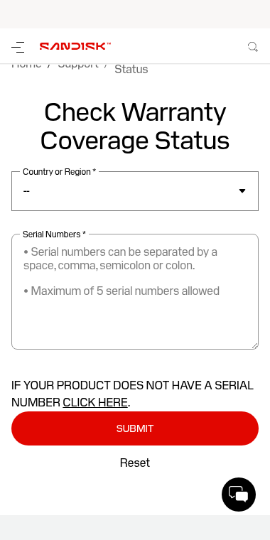This is SanDisk's official support page where you can quickly check the warranty status for your memory card, flash drive, or SSD. It's a handy tool to see if your gear is still covered.