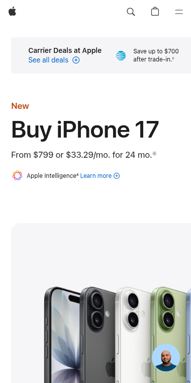 GET $40 - $700 OFF A NEW IPHONE 17 WHEN YOU TRADE IN AN IPHONE 8 OR NEWER. 0% FINANCING AVAILABLE. BUY NOW WITH FREE SHIPPING. for Major iPhone retailers at apple.com