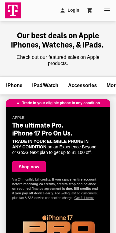 Hey, if you're looking to upgrade your phone or switch to T-Mobile, this is the spot to check out. They've got all the latest iPhone offers and promotions laid out in one place, making it easy to find a great deal.