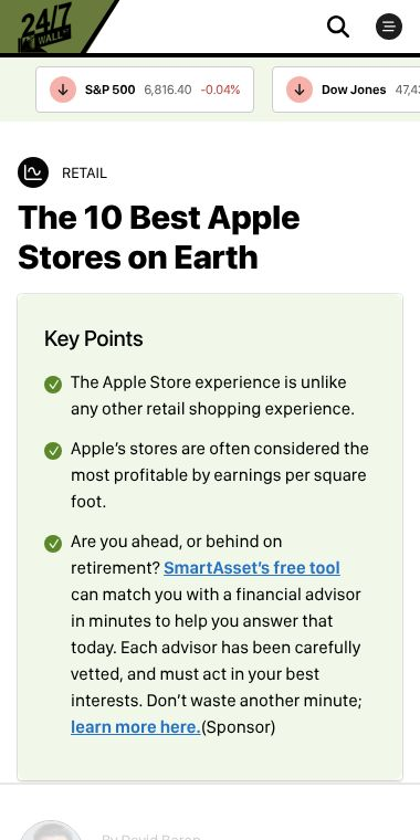h2: Looking Back on the Deadliest Terror Attacks in the United States,At 55 and Eyeing Retirement, What Hidden Rules Could Shape Your 401(k) Future?,10. Apple Shanghai,Glass Cylinder Entrance,9. Apple Michigan Avenue,Looks Like A MacBook,8. Apple Dubai Mall,Sweeping View of Dubai,7. Apple Central World,Huge Glass Cage,6. Apple Marina Bay Sands,The Dome,5. Apple Piazza Liberty,Chasing Waterfalls,4. Grand Central Station,The Train Station,3. Apple Sanlitun Store,Beautiful Glass Windows,2. Apple Tower Theater,The First Theater,1. Apple Fifth Avenue,The Glass Cube,Our $500K AI Portfolio,NVIDIA Shares Dropped 7% This Week: 3 Catalysts For the Fall,Live: Will AMD Blow Out Q3 Earnings Tonight?,Continue Reading,The 10 Best Starbucks Locations on Earth,Why Apple quit Stockholm,Best Places to Shop on Black Friday,AAPL Weekly Headline Roundup: May 1,Manhattan’s Most Expensive Penthouse Sold for $135 Million This Year,What’s Important in the Financial World (12/8/2011) Macy’s vs. Martha Stewart, Apple Grand Central,Walmart Is the World’s Biggest Retailer and These Are It’s 10 Most Impressive Locations,These Are the 10 Buc-ee’s Locations Worth the Road Trip,Why Starbucks Stock Trades Near 52-Week Low,Top Gaining Stocks,Top Losing Stocks
