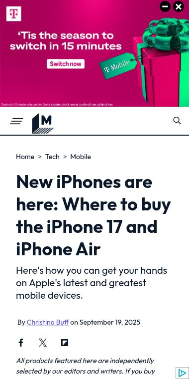 NEW IPHONES HAVE OFFICIALLY HIT SHELVES. HERE'S WHERE TO BUY THE IPHONE 17, IPHONE 17 PRO AND PRO MAX, AND IPHONE AIR. for Major iPhone retailers at mashable.com
