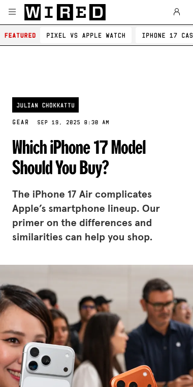 THE IPHONE 17 AIR COMPLICATES APPLE’S SMARTPHONE LINEUP. OUR PRIMER ON THE DIFFERENCES AND SIMILARITIES CAN HELP YOU SHOP. for Major iPhone retailers at wired.com