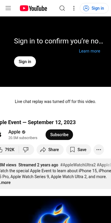 APPLE EVENT — SEPTEMBER 12, 2023 - YOUTUBE