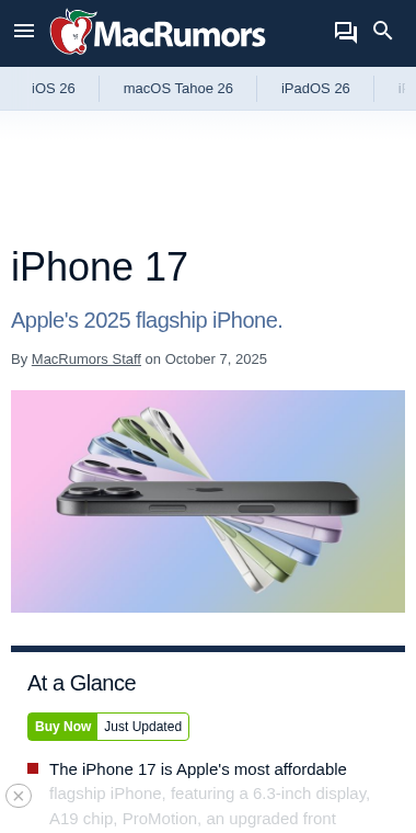 h2: Apple's 2025 flagship iPhone.,Should You Buy an iPhone 17?,The 2025 iPhone 17,Contents,How to Buy,Reviews,Design,Display,A19 Chip,Dual-Lens Rear Camera,Battery Life,5G Connectivity,Emergency SOS via Satellite,Crash Detection,Bluetooth, Wi-Fi, NFC, GPS, and Ultra Wideband,iPhone Air and iPhone 17 Pro Models,After the iPhone 17,iPhone 17 Timeline,Our Staff,Related Links