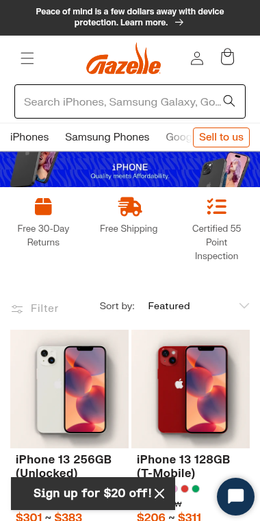 h2: ,,Filter:,Filter,Filter,,Shop by Category,Choose the right model for you!,Sell Us Your Device in Minutes,The Apple iPhone: The Gold Standard in Modern Smartphones,The Benefits of a Refurbished iPhone Purchase,Explore Gazelle's Comprehensive Inventory of Certified Refurbished Apple Products,Buy a Lightly Used iPhone from Gazelle Today,Ready to Level Up? Gazelle Has You Covered,FAQs,Help,About Us,Affordability,Other,Let's Get Connected