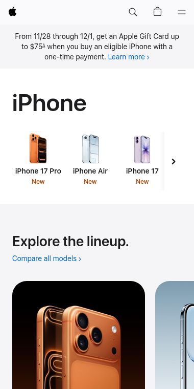 This is Apple's sleek and polished website dedicated to the iPhone. It's designed to be super visual and easy to explore, showing off the latest models with big, beautiful photos and videos.