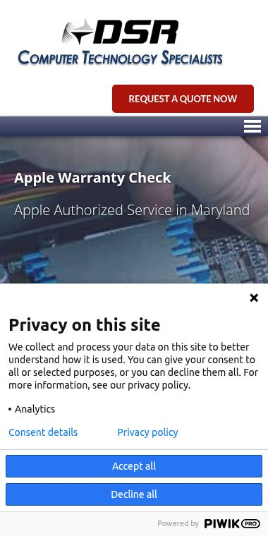 DO YOU NEED TO CHECK THE STATUS ON YOUR APPLE COMPUTER WARRANTY? DSR IN BALTIMORE CAN YOU HELP YOU. GIVE US A CALL TO FIND OUT THE DETAILS. for Repair status by iPhone serial number at dsr-inc.com
