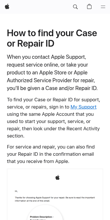 HOW TO FIND YOUR CASE OR REPAIR ID - APPLE SUPPORT