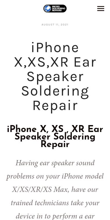 h1: iPhone X,XS,XR Ear Speaker Soldering Repair h2: nav_tags: Home,Services,Get a Quote,Mail In Repair,Gallery,Repair Status,FAQ,Contact Us,Blog,About content: