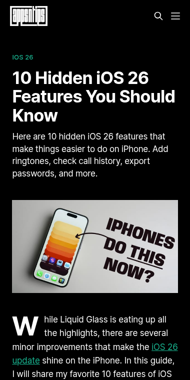 HERE ARE 10 HIDDEN IOS 26 FEATURES THAT MAKE THINGS EASIER TO DO ON IPHONE. ADD RINGTONES, CHECK CALL HISTORY, EXPORT PASSWORDS, AND MORE. for Reviews of hidden iOS features at appsntips.com