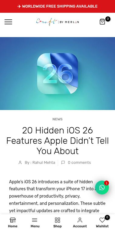 UNCOVER 20 HIDDEN IOS 26 FEATURES APPLE DIDN’T ANNOUNCE. FROM SMART TWEAKS TO ADVANCED TOOLS, EXPLORE THE SECRETS THAT MAKE IOS 26 EVEN MORE POWERFUL. for Reviews of hidden iOS features at craftbymerlin.com