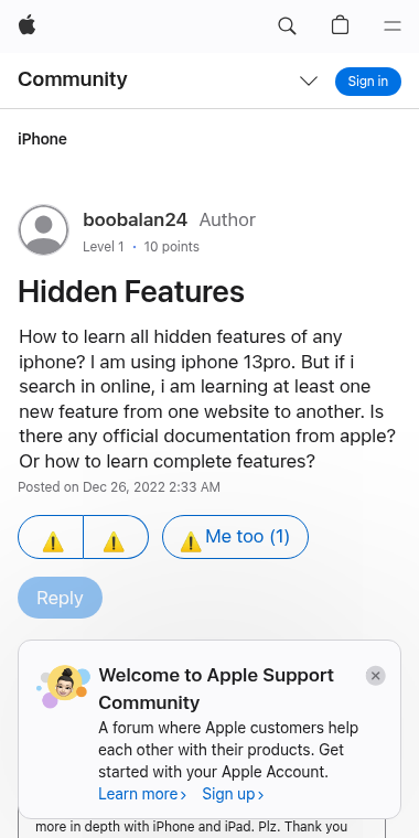 This is a page on Apple's official community forums where users help each other out with all sorts of tech problems and questions.