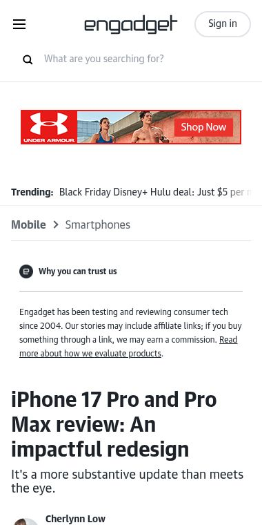 This specific page is a full review of the iPhone 17 Pro and Pro Max. It dives deep into the phone’s impactful redesign, discussing its new features, camera performance, battery life, and whether it’s worth the upgrade.