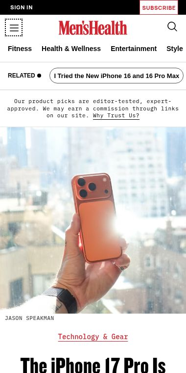 I TESTED THE IPHONE 17 PRO, APPLE'S PREMIUM SMARTPHONE, WHICH HAS BEEN REDESIGNED WITH A BIGGER BATTERY, BETTER CAMERAS, AND MORE. HERE'S WHAT I THOUGHT. for Reviews of new iPhones and accessories at menshealth.com