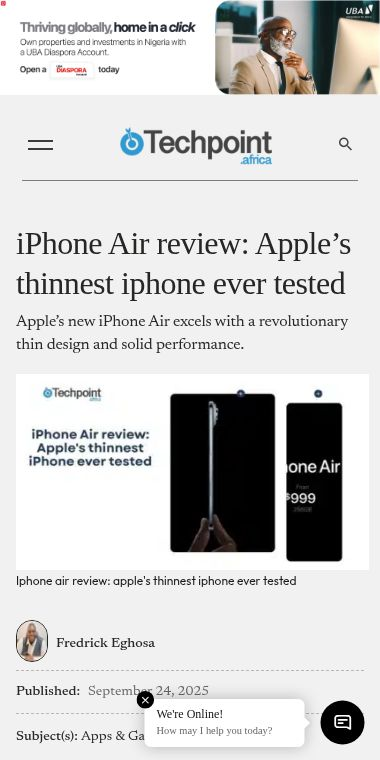 COMPLETE IPHONE AIR HANDS-ON REVIEW: DESIGN, PERFORMANCE, CAMERA QUALITY, AND BATTERY LIFE TESTED. IS APPLE'S THINNEST IPHONE WORTH BUYING? for Reviews of new iPhones and accessories at techpoint.africa