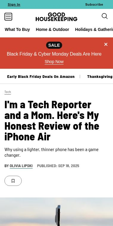 EVERYTHING YOU NEED TO KNOW ABOUT THE ALL-NEW IPHONE AIR — AND WHO MIGHT BENEFIT FROM SWITCHING TO IT. for Reviews of new iPhones and accessories at goodhousekeeping.com