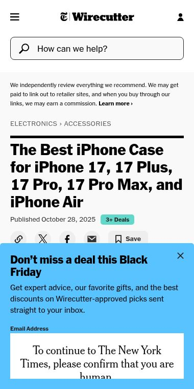 This is a New York Times Wirecutter page, but it’s for a product that doesn’t exist yet. It’s a placeholder for their famously thorough and trusted reviews, just for a future iPhone model.