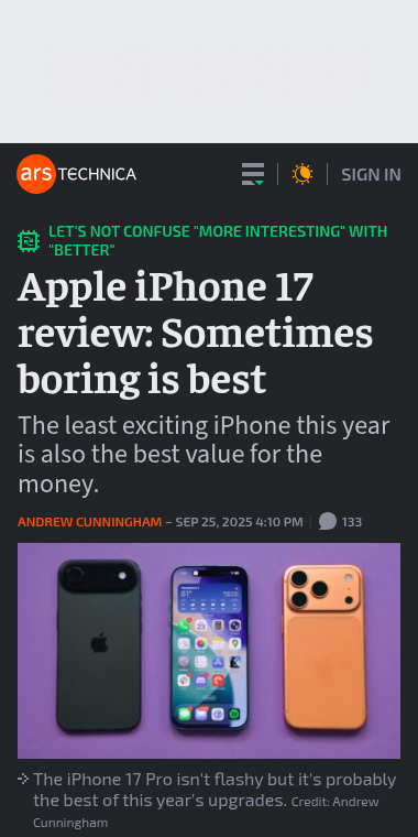 Apple iPhone 17 review: Sometimes boring is best - Ars Technica