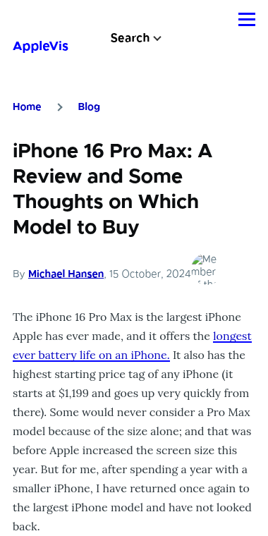 AppleVis is a fantastic community-driven site where blind and low-vision users share their experiences with Apple products. It's a go-to spot for honest, accessibility-focused tech insights.