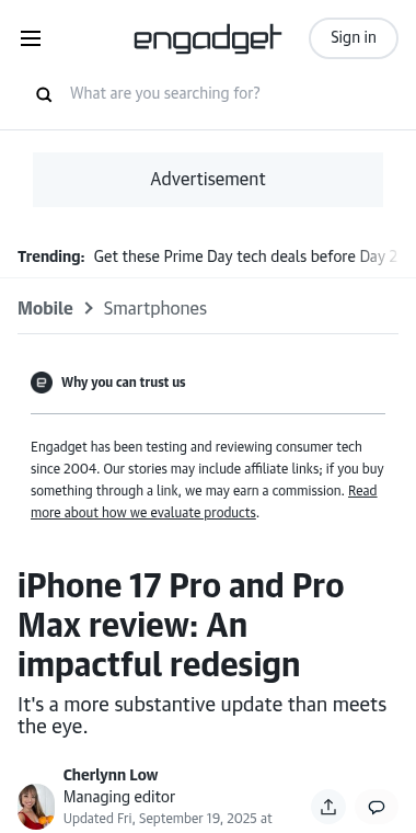 Engadget Reviews the Redesigned iPhone 17 Pro