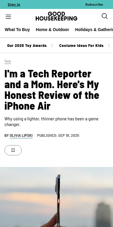 EVERYTHING YOU NEED TO KNOW ABOUT THE ALL-NEW IPHONE AIR — AND WHO MIGHT BENEFIT FROM SWITCHING TO IT. for Reviews of new iPhones at goodhousekeeping.com
