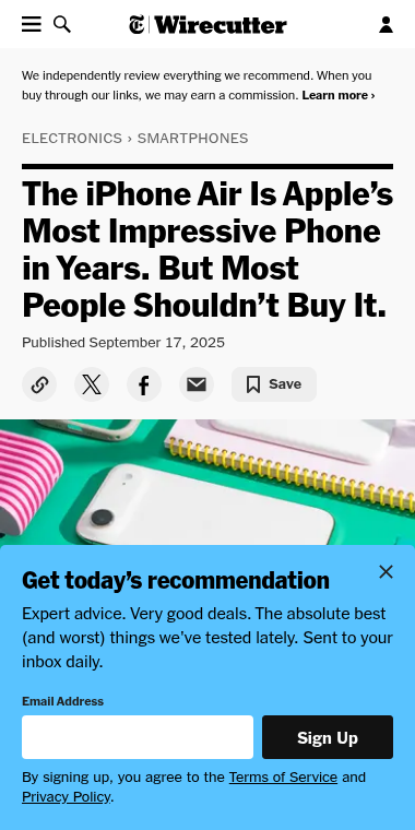 THE IPHONE AIR IS APPLE’S MOST IMPRESSIVE PHONE IN YEARS. BUT MOST PEOPLE SHOULDN’T BUY IT. | REVIEWS BY WIRECUTTER